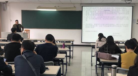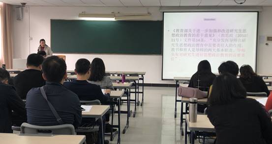 随后,杜焕君副书记介绍了研究生导师德育教育的相关规定。杜书记在会议上强调研究生导师是思政第一责任人,要求导师在学生考勤请假、学生党员教育等方面严格审核流程,共同做好学生管理及思政教育工作。