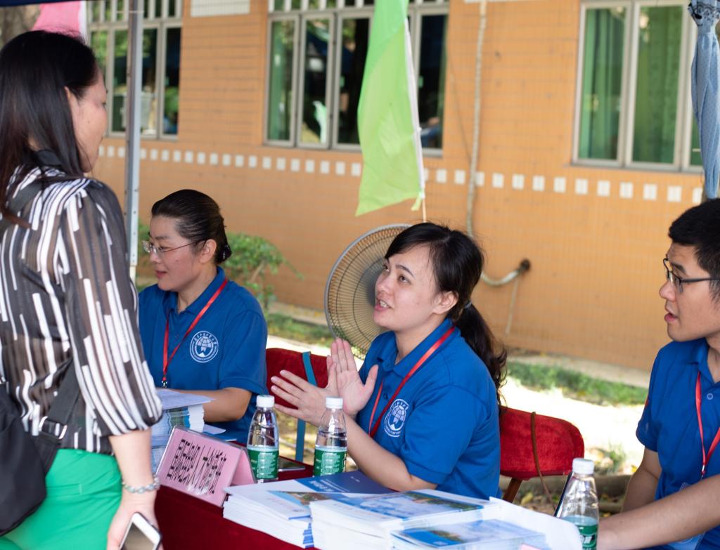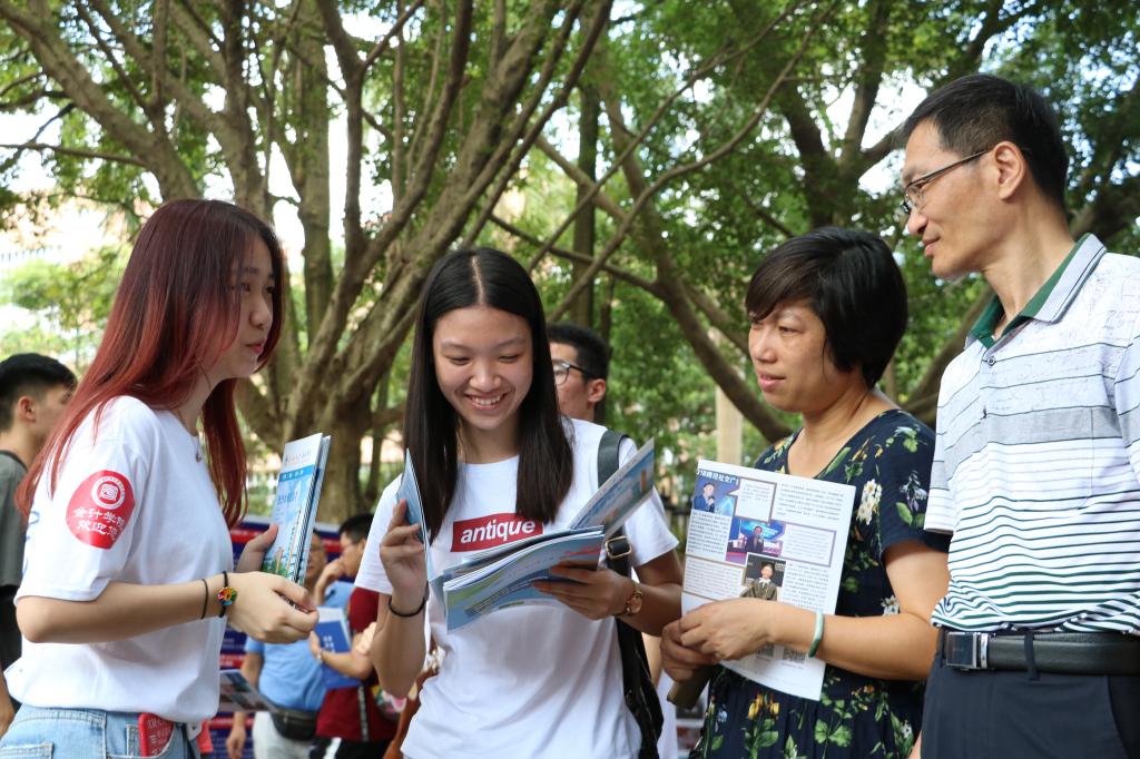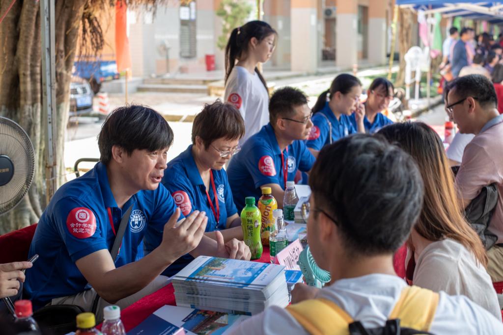 尽管烈日炎炎,但前来参观、了解学校环境、咨询招生政策的学生家长们依旧络绎不绝。不少考生及家长对会计学院开设的专业、创新班十分感兴趣,纷纷前来咨询。我院老师们积极耐心地为考生及家长们介绍学院专业设置及2019年招生情况,也详细介绍了ACCA国际会计创新班、CIMA国际管理会计创新班以及2019年新开设的会计学(国际组织人才)创新班的情况,帮助考生解除填报志愿时遇到的困惑,现场咨询火爆、气氛热烈。