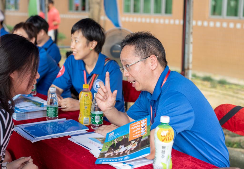 参加活动的学生们也积极地在校道上派发传单宣传,引领考生及家长到学院摊位咨询。