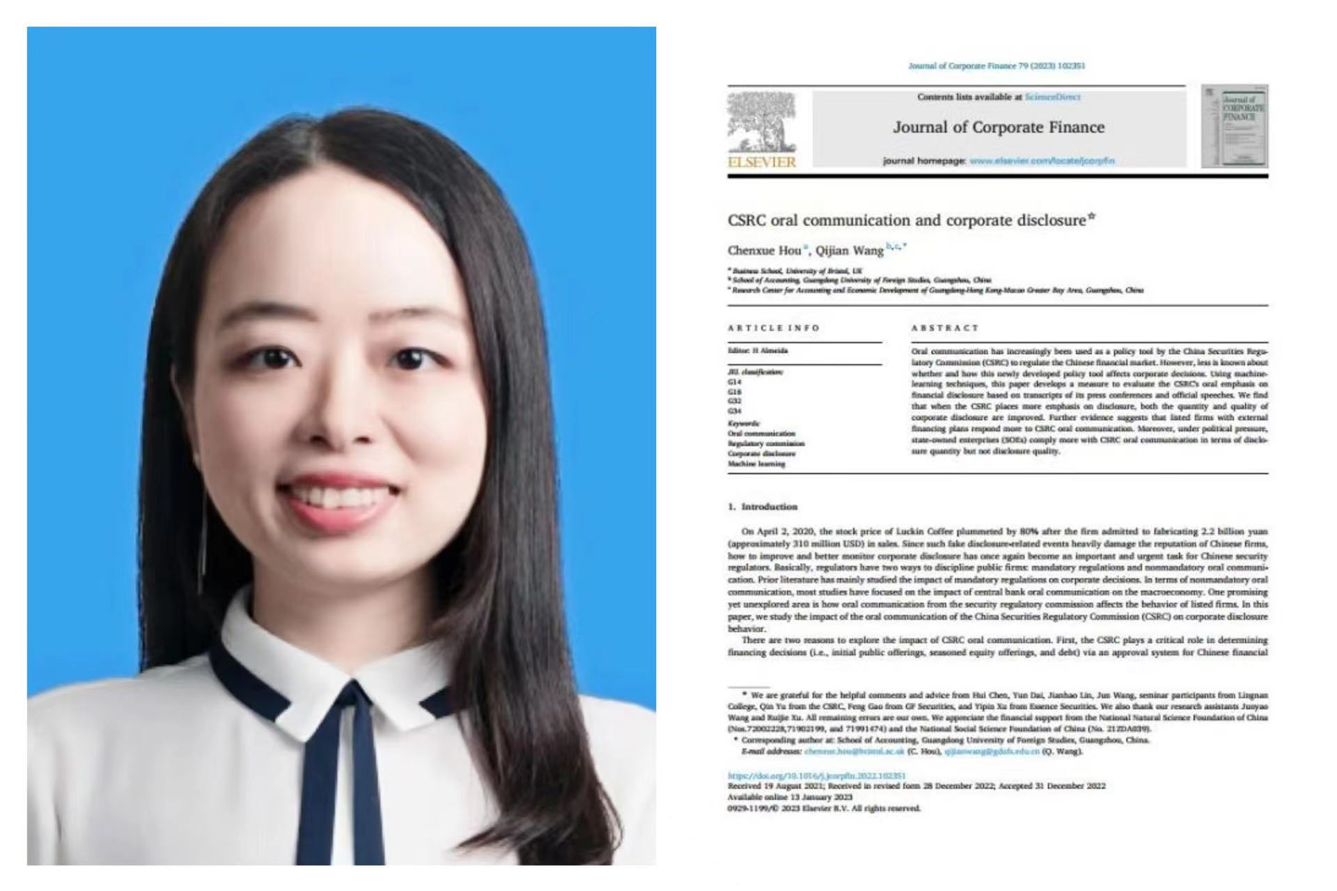 我院财管系讲师王起健作为通讯作者的论文《证监会口头沟通和企业信息披露》于2023年4月发表在国际财务学科权威期刊Journal of Corporate Finance。
