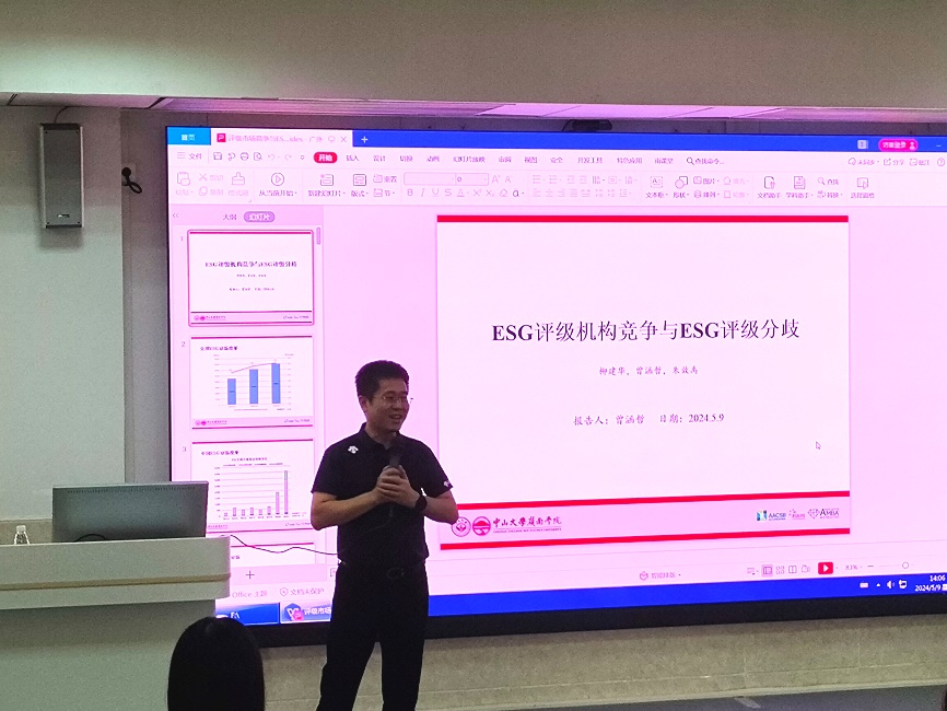 著名学者论坛由会计学院副院长龙文滨教授主持,邀请柳建华教授作为主讲嘉宾,带来题为“ESG评级机构竞争与ESG评级分歧”的讲座。柳建华老师是中山大学岭南学院教授、博士生导师,中山大学资本市场研究院执行院长,财政部全国会计领军人才(学术类)。研究方向为上市公司财务与会计行为、投资者保护与资本市场监管、公司治理等。