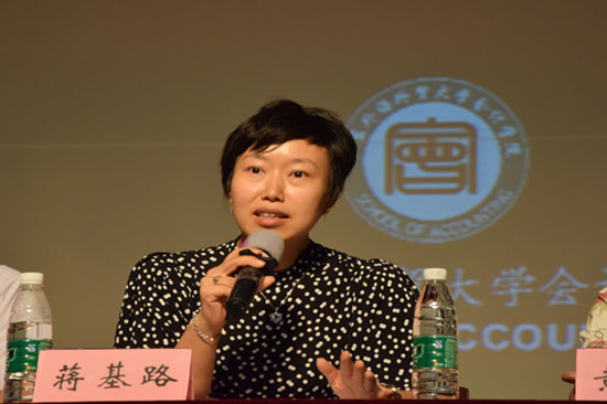 大会第二个环节则是由蒋基路副院长为17级新生进行专业介绍。她首先对文理科生在就读会计学院是否会有基础上的差异进行分析解释,指出会计是一门文理兼修的专业,既需要理科细心缜密的信息处理过程,亦需要文科逻辑清晰的表达理解,无论是文科生还是理科生,在进入大学时,都将处于同一起跑线。而后又通过一个浅显比喻向同学们解释了会计学院会计、审计和财务管理三个专业的区别,介绍了ACCA和CIMA创新班,并且说明了专业分流的程序与依据,为新同学们解开疑惑。还详细说明了广外作为一所国际化特色鲜明的大学与国外学校有哪些交流与合作,以及讲解“2+2”、交换生、单派等国际交流项目。最后,蒋副院长将“专注、归纳、泛读、改变”八字箴言送给同学们,愿他们成为优秀的人才。