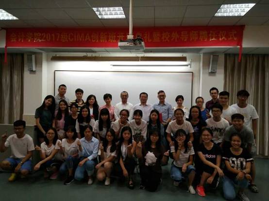 2017年9月23日,会计学院2017级CIMA创新班开班典礼暨校外导师聘任仪式按期举行,学院对CIMA创新班给予了高度重视,特别聘请了具有丰富实务经验的财务负责人作为CIMA创新班学生的校外导师,为CIMA创新班学生的学习搭建了良好的实习实践平台。