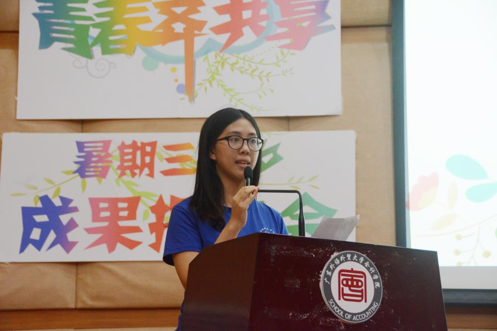 出席本次会议的嘉宾有会计学院党委副书记黄晓梅老师,14级辅导员周雅颂老师,团委书记、15级辅导员邓海清老师,16级辅导员丁建新老师以及17级辅导员李浩然老师。观众们怀揣着对“三下乡”社会实践活动的回忆或憧憬到场观看了本次报告会。
