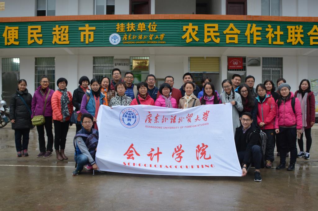 为深入学习党的十九大精神,深刻领会习近平总书记“精准扶贫”的重要思想,2017年12月15日至16日,会计学院党委书记孙家和率全院28名教职工赴清远阳山蒲芦洲开展精准扶贫为主题的党日活动暨实地政治学习。参加此次活动的学院领导还有刘中华院长、汤胜副院长、黄晓梅副书记。
