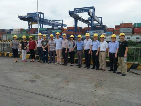 随后,财务管理系调研团队在两家公司领导带领下参观了两家公司的实际一线工作。在佛山高明珠江货运码头,调研老师们参观了高明珠江货运码头有序的工作流程、科学的管理手段和先进高大的机床设备。