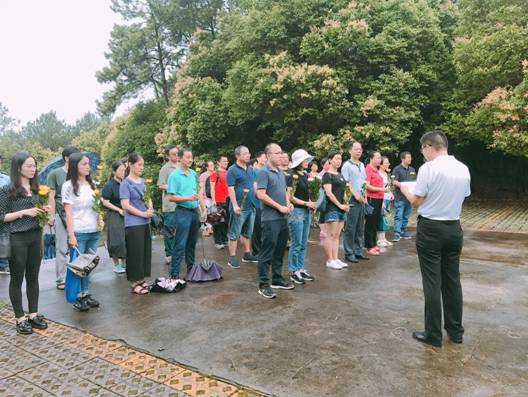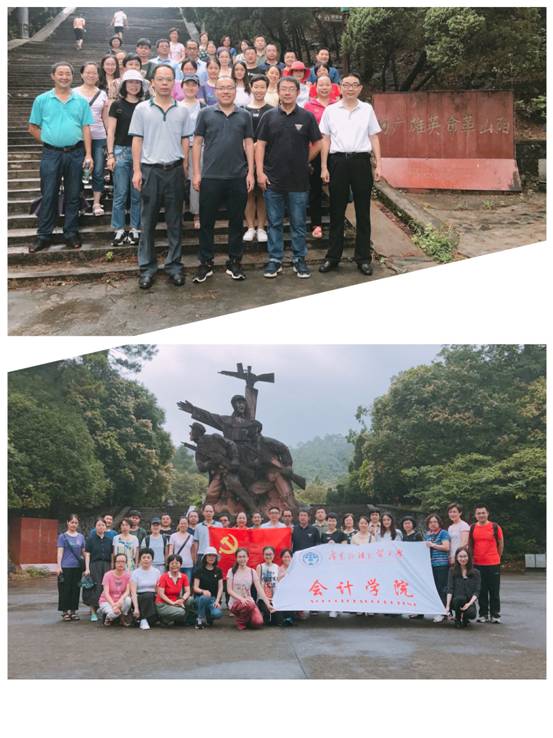 翌日,会计学院组织教师们前往阳山烈士陵园,举行“勿忘初心”主题党日活动。阳山烈士陵园位于广东省清远市阳山县阳城镇城北村北面的贤令山,面积约四万平方米,包括纪念碑、烈士墓、革命战士浮雕、英雄广场等。孙家和书记介绍了阳山县革命斗争历史,还勉励大家要继续不忘初心,为教育事业做出贡献。随后,学院教师们集体为烈士敬献鲜花,愿其精神永存不朽。