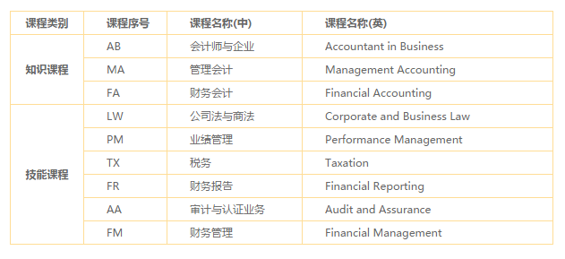 六、ACCA 考试科目列表