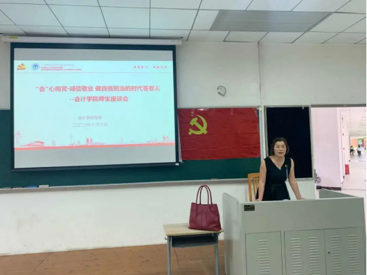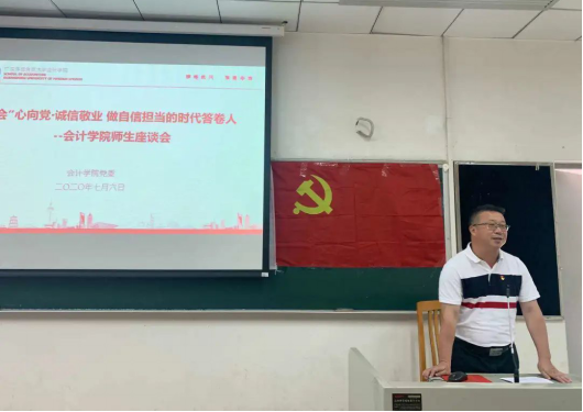 7月6日下午,学院举行了主题为“‘会’心向党·诚信敬业——做自信担当的时代答卷人”的会院师生座谈会,学院党委书记谢伟光,党委副书记、院长余鹏翼,党委副书记杜焕君,MPAcc教育中心主任池海文,辅导员及本硕毕业生党员代表参加了本次会议。此会议强化了毕业生党员的党员意识,为学生党员未来进入社会交出时代答卷奠定了坚实基础。座谈会上,各位领导老师对毕业生提出了殷切期望和美好祝福。当日,各党支部分别召开了毕业生预备党员转正会议。