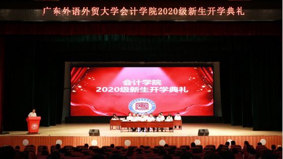 9月22日下午,广东外语外贸大学会计学院2020级新生开学典礼在南校区大会堂隆重举行。会计学院院长余鹏翼、党委书记黎冬、党委副书记杜焕君、副院长左志刚、汤胜、蒋基路,教师代表龙文滨、黄浩、刘倩茹、12位校外实践导师、全体辅导员老师以及626位本科生及研究生新生参加了此次开学典礼。典礼由杜焕君主持。