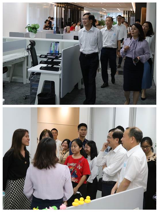 最后,全体人员参观了公司的岗位设置、工作环境,并探访了在此工作的校友,何校长与尹总就全球化研究合作等方面进行了探讨。