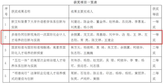 高等教育教学成果奖是对高校人才培养和教育教学改革成果的检验与展示,充分体现了我院在立德树人和提高教育教学水平等方面取得的重大进展。近年来,我院高度重视高水平教学成果的培育,多措并举鼓励教师进行教学改革和创新,涌现一批卓有成效的教学成果,涉及人才培养体系、专业和课程建设、教育教学模式等领域的改革和创新。学院将充分发挥此次获奖成果的示范带动作用,进一步加大力度培育高水平教学成果,引导广大师生深化教育教学改革,切实提高教育教学水平和人才培养质量。