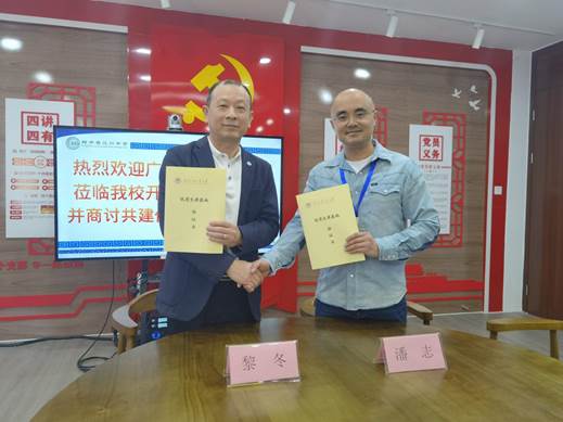 黎冬详细介绍了广东外语外贸大学的办学规模、师资队伍、专业建设、学生就业与深造等情况。同时,对江口中学每年为广东外语外贸大学输送了优秀学子表示感谢,并表示两校将继续加强沟通与合作,为学子成长成才共同创造有利的条件,为教育事业高质量发展作出更大的贡献。国际学院办公室主任张海强简要地介绍了广外“2+2国际本科”今年推出的升级项目“A+项目”,之后潘校长与黎书记签署优质生源基地协议书,黎冬书记代表学校向江口中学授牌。