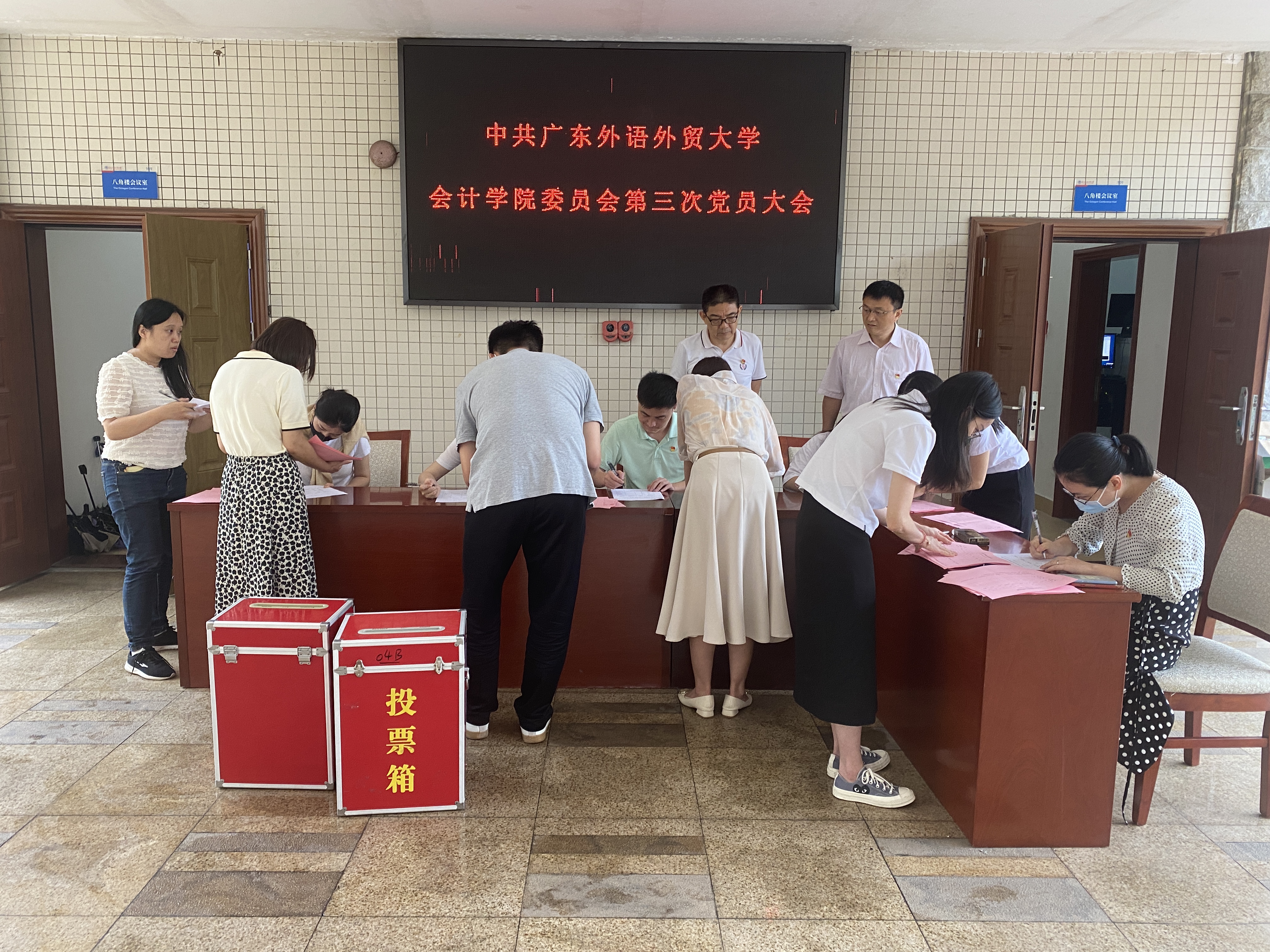 6月8日下午,中共广东外语外贸大学会计学院委员会第三次全体党员大会(以下简称“大会”)在大学城校区八角楼报告厅隆重举行,会计学院全体党员参加会议。会议听取和审议了会计学院党委工作报告,选举产生了学院新一届党委委员。大会由学院党委副书记李海琳主持。