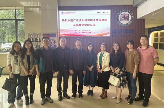 12月14日下午,广州涉外经济职业技术学院校长许国彬、商务管理学院党总支书记、副院长陈华娜、商务管理学院副院长何红梅等一行前来我院进行调研交流。我院党委书记黎冬、副院长黄浩、党委副书记李海琳、会计系主任曹瑜强等学院相关人员参与会议。