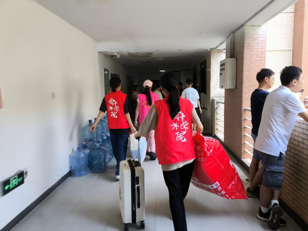 会计学院院长余鹏翼、学院党委书记黎冬、学院副书记龙文滨、洪昀、学院副书记李海琳以及学院全体辅导员老师在迎新站点、宿舍等地与新生亲切交流,寄语新生适应大学生活,共创未来,并高度赞扬了志愿者工作。