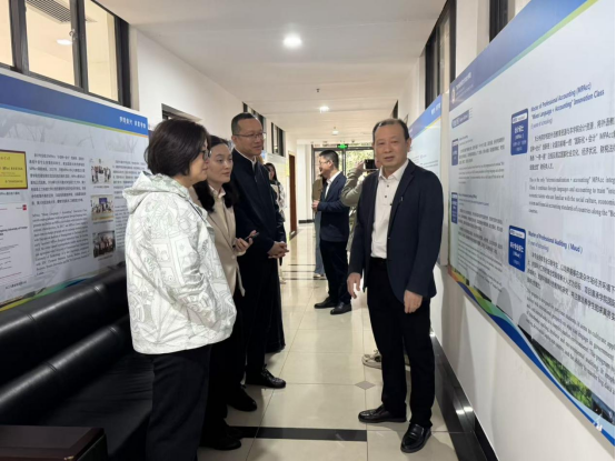 交流伊始,在黎冬书记的带领下,广东财经大学会计学院代表团先后参观了学院的“快意人生”文化共享空间、教师和行政人员办公区域等场所。黎冬书记详细介绍了学院的办学历史沿革、师资队伍建设成果、学科专业布局以及基础设施配套等情况,着重展示了学院在国际化办学、实践教学改革等方面的特色与优势。代表团一行对广外会计学院整洁有序的办学环境、结构合理的师资队伍以及完善的教学设施给予了高度评价。