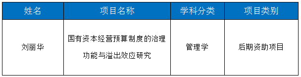 近日,2025年国家社科基金中华学术外译项目和后期资助暨优秀博士学位论文出版、优秀学术论文再版项目立项名单公示。我院刘丽华老师主持申报的《国有资本经营预算制度的治理功能与溢出效应研究》成功获批后期资助项目。