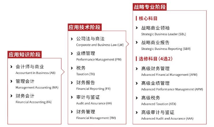 ACCA 共 15 门科目,分为应用知识科目、应用技术科目和战略专业科目。
