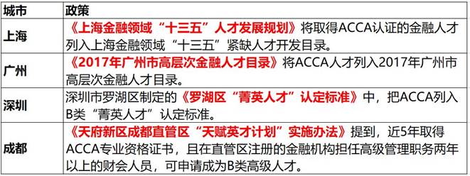 表1:将ACCA列入高端金融、财会人才引进计划城市情况表(部分)
