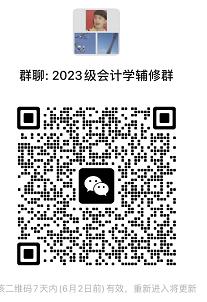 2023年辅修专业学生(主修为2022级)的课程将于9月4日开始上课。请拟录取同学扫描以下二维码加入2023级会计学辅修群(昵称请改为“南或北+真实姓名”),后续事宜将通过微信群通知。
