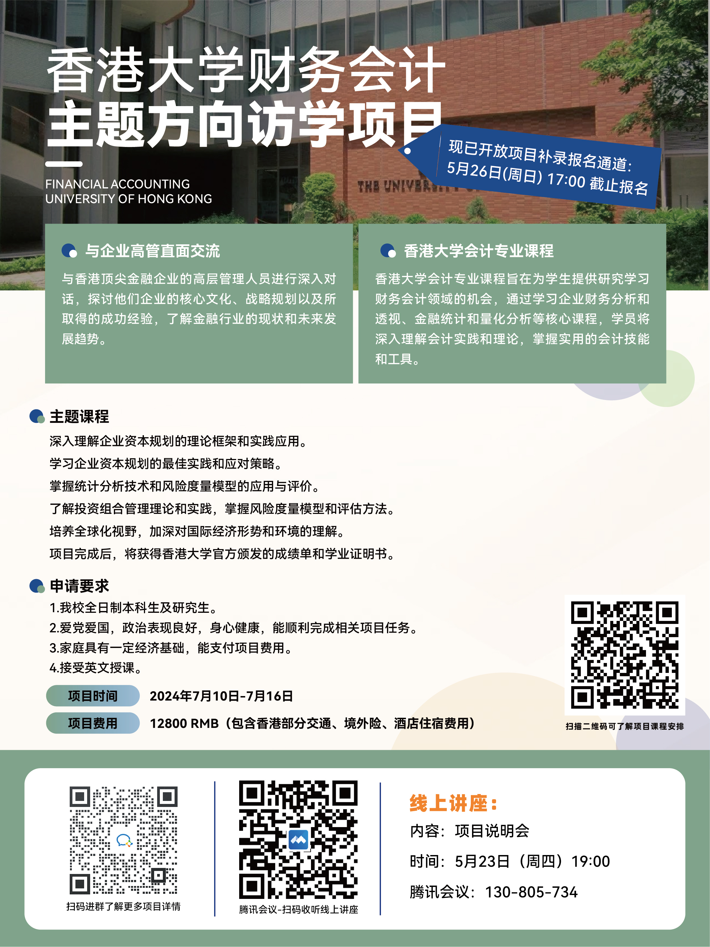 一、香港大学财务会计主题方向访学项目