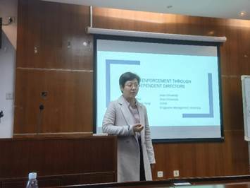 12月2日下午,会计学院邀请暨南大学副教授李晓溪博士作题为《Public Enforcement through Independent Directors》的讲座。李博士以独立董事为切入点,探讨Public Enforcement如何发挥作用,并就文章研究动机、制度与现实背景、理论与实证分析、结论与贡献展开,向会计学院师生分享了该项研究成果。
