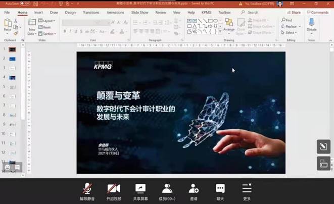 余佳燕强调,数据化时代社会对具有数据分析能力的技术型、复合型、专家型审计师人才需求量会大大增加,对于人才的需求已从量的追求转变为对质的要求,这将体现为对人才追求的量的减少和质的提升,其中对“质的提升”方面要求的关键点在于:人才的数据分析能力。此外,她讲解了“项目计划及风险评估”、“审计程序实施”、“总结与报告”三个阶段运用到的最佳数据工具。提醒同学熟练掌握Excel和云上共享处理的技能,时刻牢记自己立身于大数据时代。还介绍了毕马威在审计师团队开展“数字人才培优项目”,将审计师培养成业务专家、数据专家、技术专家三类专家以满足数字化转型的需要,使同学深刻地认识到大数据在审计职业中的重要地位。