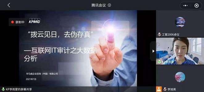 李雨蒙分享了“互联网IT审计之大数据分析”专题,强调IT审计就是信息系统审计,是独立于信息系统本身、信息系统相关开发以及使用人员的第三方,是财务审计的延伸和支撑。指出大数据审计具有审计智能化、审计平台化、审计信息多维化、从抽样审计向详细审计转变以及审计可视化等五大趋势,以及面临大数据获取成本高、观念与习惯转变困难、人才难得、审计业务的复杂性与大数据审计体系设计的复杂性等五大挑战。还介绍了IT审计的工作内容,并且通过不同类型的互联网企业大数据分析的案例,展示了在互联网审计中,审计人员借助互联网现代信息技术,运用大数据分析的专门方法,通过人机结合,对被审计单位的网络会计信息系统的开发过程及其本身的合规性、可靠性和有效性以及基于网络的会计信息的真实性、合法性进行远程审计,深刻体现着互联网大数据分析与审计工作的结合。