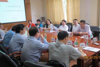 5月4日,会计学院会计硕士学位标准论证会于南校院系楼会计学院会议室举行。何传添副校长、研究生院袁泉院长、刘中华院长、孙家和书记、汤胜副院长、池海文主任、刘小清教授、林丹丹教授及曾昭灶副教授参与会议。中山大学谭劲松教授、暨南大学黎文婧教授、华南理工大学张卫国教授、经贸学院李传喜教授、商英学院郭桂杭教授以及正中珠江合伙人杨文蔚先生、天职国际会计师事务所资深会计师韩雁光先生7名学术及实务界学者专家应邀成为本次论证会的评审成员。会议就我院会计专业硕士学位的培养标准和方案展开讨论。