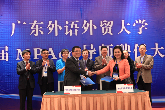 会议还共同见证了广东外语外贸大学会计学院与佛山市财务管理协会合作建立“会计硕士(MPAcc)研究生实习基地”协议书的签署。