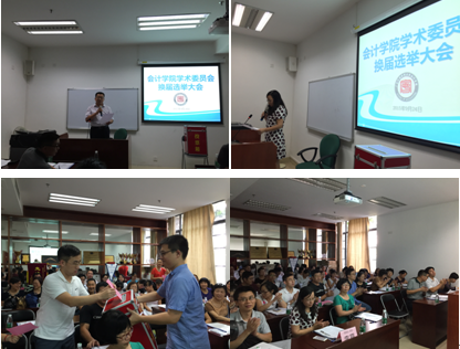 随后,刘中华院长按《广东外语外贸大学学术委员会章程》选举程序组织进行民主换届选举,由会计系常亮老师、财管系高翔老师负责计票,会计系王群老师唱票、辅导员沈长霞老师监票。投票、计票结束后,监票人沈长霞老师公布选票结果,新一届会计学院学术委员会诞生,9名正式委员如下:左志刚、刘中华、孙家和、汤胜、蒋基路、刘小清、林丹丹、余鹏翼、杨海蓉。