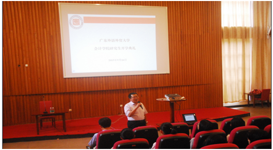 2015年9月16日,会计学院首次研究生开学典礼暨2015级研究生新生开学典礼于南校学术交流中心一楼报告厅隆重举行。首届MPAcc研究生及2015级学术研究生共计93人参加了本次典礼。出席本次典礼的有我院党委书记孙家和教授、院长刘中华教授,副院长汤胜教授,MPAcc教育中心主任池海文副教授和教师代表刘小清教授。本次典礼由汤胜副院长主持。