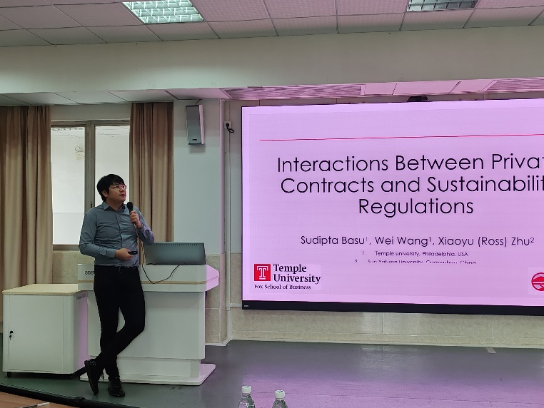 2024年6月6日下午,云山会计论坛系列学术讲座第十二期、青年学者沙龙第三期于会计学院D座312会议室举办。青年学者沙龙由会计学院钟子英老师主持,邀请朱效禹助理教授作为主讲嘉宾,带来题为“Interaction Between Private Contract and Sustainability Regulation”的讲座。朱效禹老师现任中山大学岭南学院金融系助理教授,博士毕业于纽约城市大学-巴鲁克商学院,研究领域为ESG、银行以及公司金融。