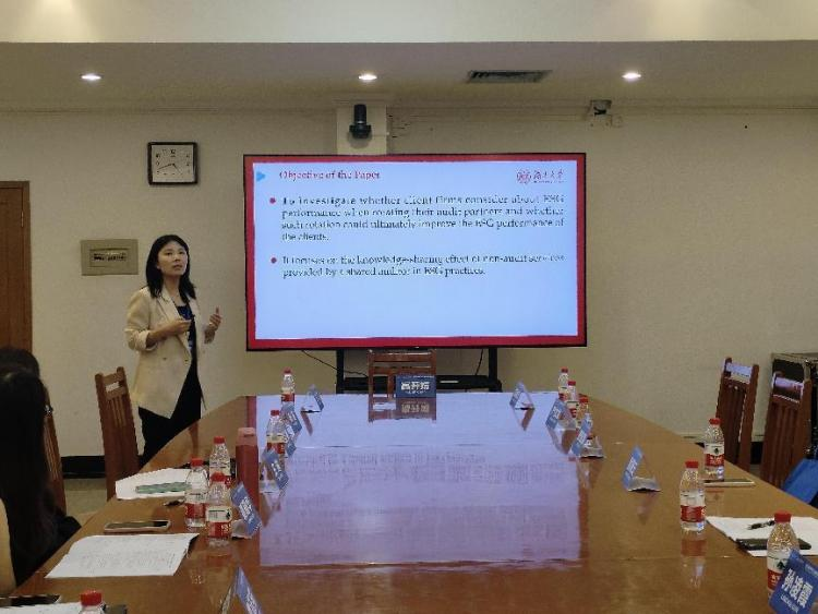 第二位汇报人是来自北京师范大学香港浸会大学的秦耀华老师,其论文题目为《Environmental, Social, and Governance Performance and Audit Partner Selection》。论文主要研究问题是在公司越来越强调ESG(环境、社会和公司治理)绩效动机下,企业在轮换合作伙伴时是否考虑新合作伙伴在ESG方面的表现,且该选择能否提高以及如何提升企业ESG绩效?经过实证检验发现,公司如果自身ESG评级较低,更有可能选择更换为拥有高评级ESG客户的审计合作伙伴。对于拥有四大审计师、高机构所有权和国有企业的样本公司来说,这种负相关关系并不明显。