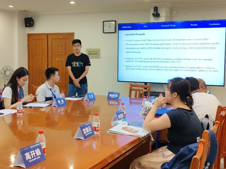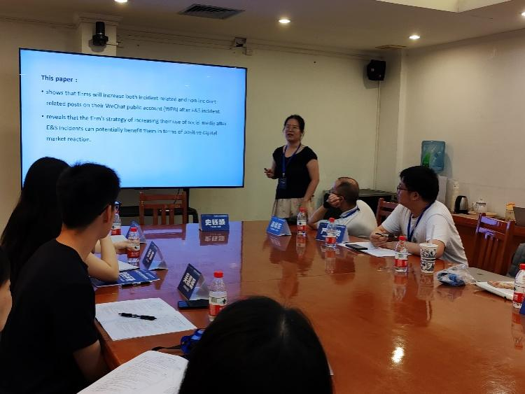 第三位汇报人是南京大学的吴嘉铭老师,其论文题目为《Strategic Use of Social Media to Manage E&S Crisis》。吴嘉铭老师以“金风科技”和“海天味业”的事例引出其研究问题:ESG负面报道发生后,企业是否会在社交媒体上增加曝光量来应对危机,以及此种策略对于企业是否有益?并据此提出论文竞争性假设:当企业面临E&S危机时,会增加或减少其微信公众号上的发文量。研究发现,当企业面临E&S危机时,会增加其微信公众号上的发文量。且在E&S事件发生后,在微信公众号上发布更多信息的公司资本市场反应较好。