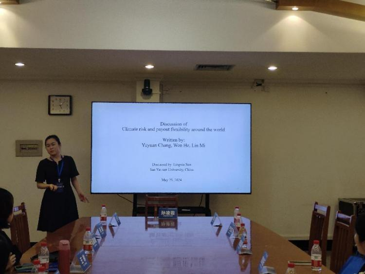 第三位汇报人是来自华南理工大学的常钰苑老师,其论文题目为《Climate Risk and Payout Flexibility around the World》。本篇论文主要回答预期气候风险较高的公司是否会采用更灵活的派息方式。常钰苑老师介绍文章所提的两大假设:(1)在应对气候风险时,企业派息总额较低,尤其是股息;(2)相对于股息而言,企业更多地选择回购。研究结果表明:企业会用回购来替代分红,以提高派息的灵活性。当人们更关注气候变化时以及当国家文化强调避免不确定性和长期导向时,气候风险对派息灵活性的影响更大。通过替代气候风险的衡量标准、增加公司固定效应、将样本统一为国家层面的数据等稳健性检验后,本文的结论依然稳健。