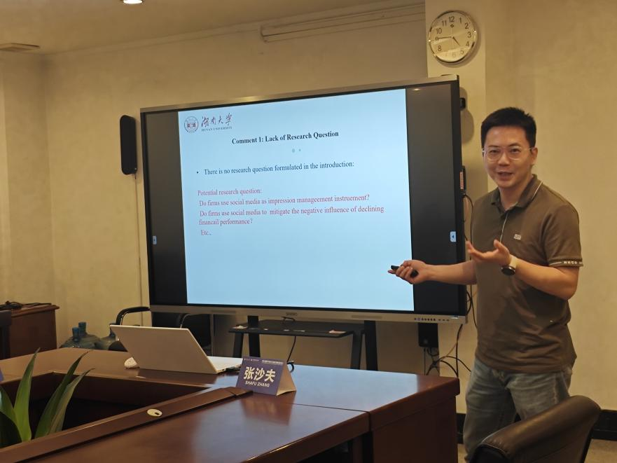 2024年5月25日下午,第六届跨学科会计研究国际研讨会第三分会场在广东外语外贸大学北校区行政楼第三会议室召开。本分会场分为上下两场,上半场由南京审计大学廖林副教授主持,聚焦讨论了《Digital Transformation and Firm Boundaries:Based on the Dispersion of Subsidiaries》《An Exogenous Institutional Shock and the Effectiveness of Government Audits: Evidence from China》《The Teeth of the Institution: Do Strict Environmental Regulations Inhibit Rent-seeking by Heavy-polluting Firms》三篇文章;下半场由广东外语外贸大学洪昀副教授主持,聚焦讨论了《Integrated Thinking and Corporate Innovation》《Corporate Social Media Disclosure Strategies: An Analysis from the Impression Management Perspective》《Judging a Book by Its Cover: Analyzing Regional Media Bias through Eleven Million Online News of Listed Firms in China》三篇文章。
