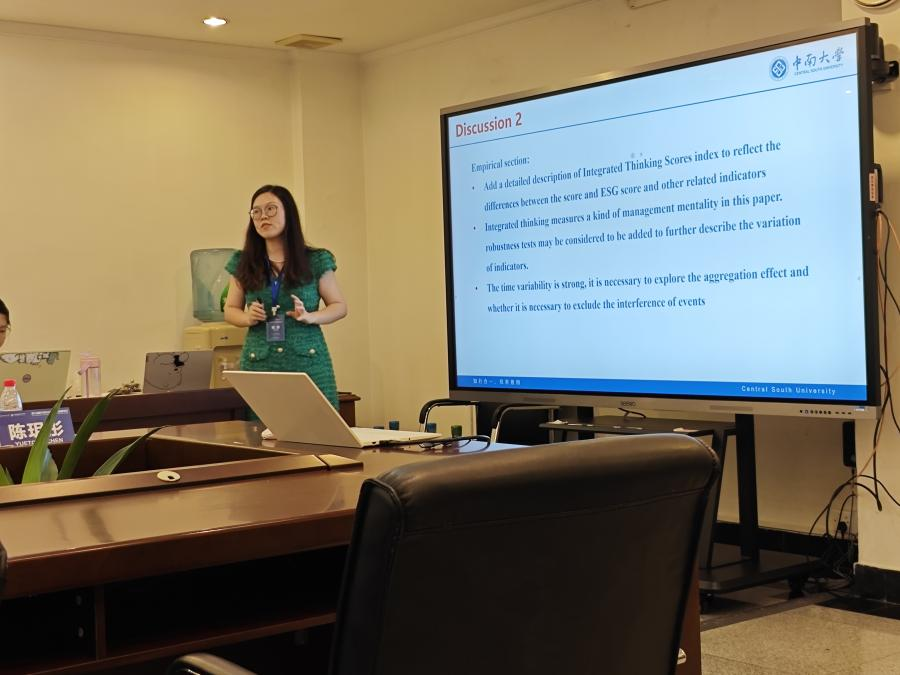 点评及建议:本文点评人是中南大学的程序老师。程序老师首先回顾了论文的主要研究内容、结论和亮点,表示通过论文学到了许多,也促进对相关主题的思考,肯定了研究问题的新颖性和重要性。同时,程序老师就论文研究内容提出许多可行性建议。如在文献回顾和研究假说方面,可以增加整合思维的理论基础阐述;对于整合思维与综合报告的辨析关系,需要找到有效区分两者的关键点;对于三大渠道,可进一步考虑直接考察,或是采用调节效应检验进行点对点检验;对治理特征进行的测试是否更适合作为额外的测试等等。此外,程序老师认为可以增加综合思维评分指标的详细描述,以反映该评分与ESG评分等相关指标的差异;考虑到综合思维是一种管理心态,可增加稳健性检验以进一步描述指标的变动情况;时间变异性较强,需要探索聚集效应以及是否需要排除事件的干扰。