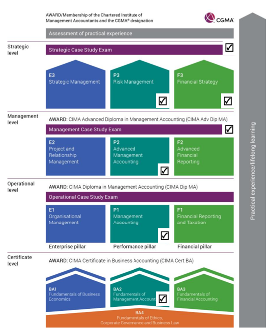第一阶段——基础阶段:完成该阶段4门专业课程并通过考试,可获得CIMA商业会计证书。