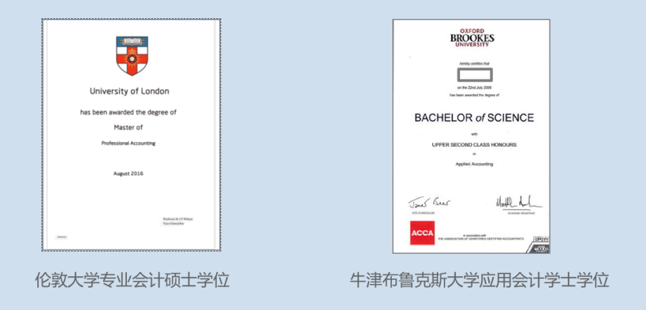 2.通过 9 科可申请:ACCA高级商业会计资格证书、英国牛津布鲁克斯大学应用会计(荣誉) 理学士学位。