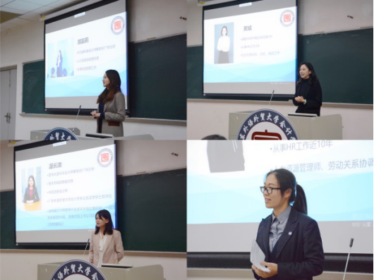 模拟招聘会结束后,模拟招聘会活动的总结大会在教学楼E104召开,讲座由5位模拟面试的评委老师担任主讲人。