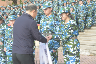 黎书记代表学院对所有承训教官和新生同学们表达了亲切的问候,并对新生们的精神面貌和训练成果给予了高度评价,黎书记说到,流血流汗不流泪,掉皮掉肉不掉队,希望大家能够把吃苦耐劳、遵守纪律、敢于奋斗的作风运用在生活和学习上。随后,由黎冬书记和李海琳副书记为教官代表及新生代表亲自发放慰问品,并做合影留念。