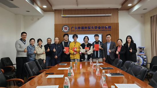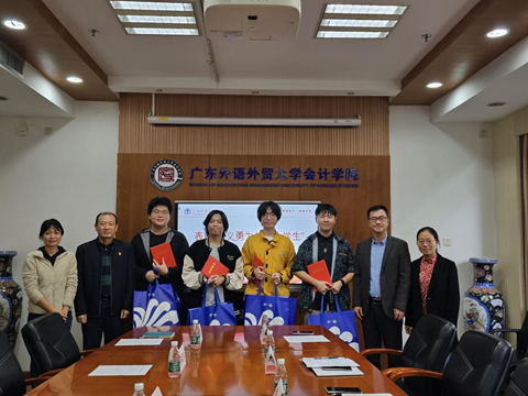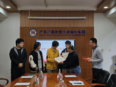 会后,商学院党委书记肖喜明、会计学院党委书记黎冬向四位同学赠送了致谢慰问品。
