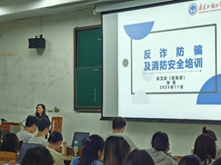 在反诈专题培训中,保卫部张雪老师通过真实发生的案例,用鲜明的数据警示同学们小心身边的电信诈骗。同时,张雪老师也提醒各位同学注意宿舍的消防安全,不使用大功率电器,不将电动车电池带入宿舍楼,防火防盗,保护自身安全。最后,张雪老师向同学们介绍了灭火器的使用方法,并用简明易记的口诀强化了灭火器的使用步骤要点。