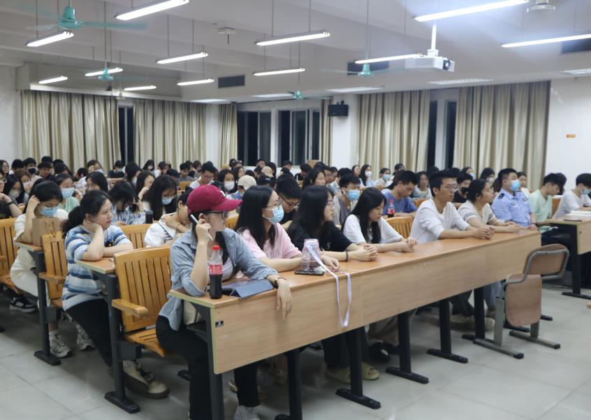 最后,庞警官呼吁大家在面对纷繁复杂的网络信息时多一份戒备,并鼓励同学们向身边的亲朋好友宣传、普及防诈骗知识。希望同学们牢记本次讲座的教育内容,将防诈骗的意识常存于心,共同构建阻绝电信诈骗的平安校园。