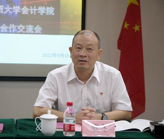 之后,黎冬书记代表学院感谢中审众环的支持,介绍了双方合作的历史及会计学院发展的近况。学校会计专业有悠久的历史,学科发展稳步上升,势头旺盛,目标是培养具有国际视野的财会精英,依托广外的外语优势,把握特色培养人才。同时,学校紧跟数字化趋势,建设了高水平实验室,走在了全国同行的前列,并表达接下来再进一步加深合作的意愿。