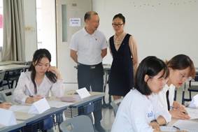 模拟招聘会现场报名公务员方向面试的同学在指定的教室进行线下行测考核,考试试题是从国考和省考历年真题中摘取的,由工作人员监考。