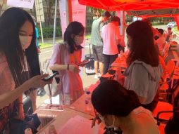 毕业生队伍有序地进行着扫码登记