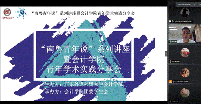 突如其来的疫情给各行各业都带来了影响,也一定程度上促进了会计审计行业的数字化转型。为了帮助同学们更深入了解疫情期间财会行业的现状以及行业的未来发展情况,会计学院于5月14日晚,在腾讯会议平台开展了主题为“新冠疫情对会计审计数字化转型影响”的2020“南粤青年说”青年学术实践线上分享会。大会邀请了安永信息科技风险咨询部郭子冰经理、审计署广州特派办李朝旗博士、会计学院蒋基路副院长以及刘星河老师作为主讲嘉宾,学院党委副书记杜焕君、团委书记刘志鹏一同出席。280名会院学子在线聆听,活动由刘志鹏主持。